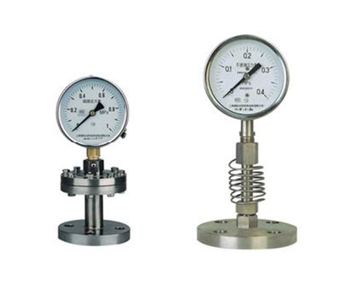隔膜式压力表是由膜片隔离装置和配用压力表两大部分组成。广泛应用于石油、化工、医药、食品、造纸等行业测量具有强腐蚀性、高粘度、易结晶及含有固体颗粒的液体介质压力。